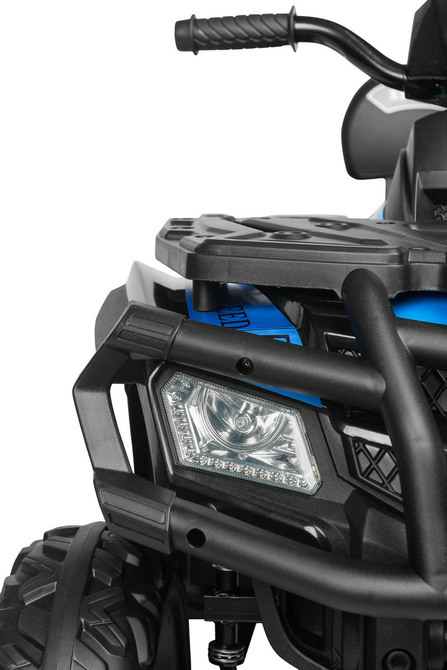 The Toyz Quad Rush is a battery-powered vehicle in which your child will experience unique off-road adventures and discover new roads. Thanks to its compact size, it is ideal for riding almost anywhere, anytime. The 4-wheel drive combined with powerful 80W motors will allow you to explore new terrain with ease and freedom. Driving comfort is ensured by rear shock absorbers, large wheels made of high-quality EVA foam, slow start, automatic brake and a seat with a backrest finished in eco-leather. In addition, the Rush has a multimedia panel with bluethooth, which will make the time spent behind the wheel more pleasant.