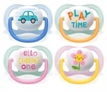Soothe your baby with a pacifier that lets their skin breathe. The Philips Avent ultra air has extra large holes to keep skin dry. Its lightweight shield is designed for maximum air flow. Available in various colours and fashionable designs.