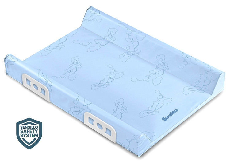 The Sensillo padded changing mat with cheerful prints has been prepared for the comfortable care of the youngest. The legs included in the set allow for safe and stable installation directly on a 60 cm wide cot. The changing table can also be mounted on a dresser or other stable surface. The changing table is distinguished by the innovative Sensillo Safety System, which prevents the child from falling out thanks to additional side reinforcements. For production, we used the highest quality materials ensuring maximum safety and comfort of use. The oilcloth on the Sensillo baby changing table is completely safe for the health of the baby – it does not contain phthalates, heavy metals and other harmful substances.