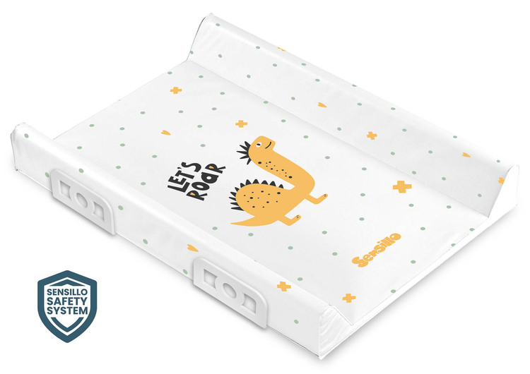 Stiffened Changing Pad with Safety System– Dino – Yellow 70 cm