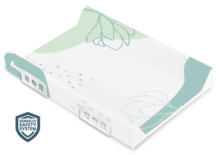 The Sensillo padded changing mat with cheerful animal prints has been prepared for the comfortable care of the youngest. The legs included in the set allow for safe and stable installation directly on a 60 cm wide cot. The changing table can also be mounted on a dresser or other stable surface. The changing table is distinguished by the innovative Sensillo Safety System, which prevents the child from falling out thanks to additional side reinforcements. For production, we used the highest quality materials ensuring maximum safety and comfort of use. The oilcloth on the Sensillo baby changing table is completely safe for the health of the baby – it does not contain phthalates, heavy metals and other harmful substances.