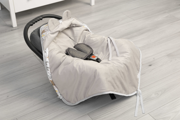 Velvet carry-cot swaddle blanket was designed for the youngest children. It is comfortable, warm and really practical. It is an alternative for warm children’s clothing. Thanks to holes for 3-point belts it is really functional – there is no need to unfasten the belts to uncover the baby in the carry-cot. The swaddle blanket has a hood with lovely ears and can be adjusted with welts. It is filled with anti-allergic filling. Inside, there is a delicate velvet fabric.