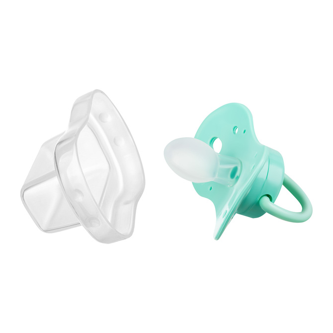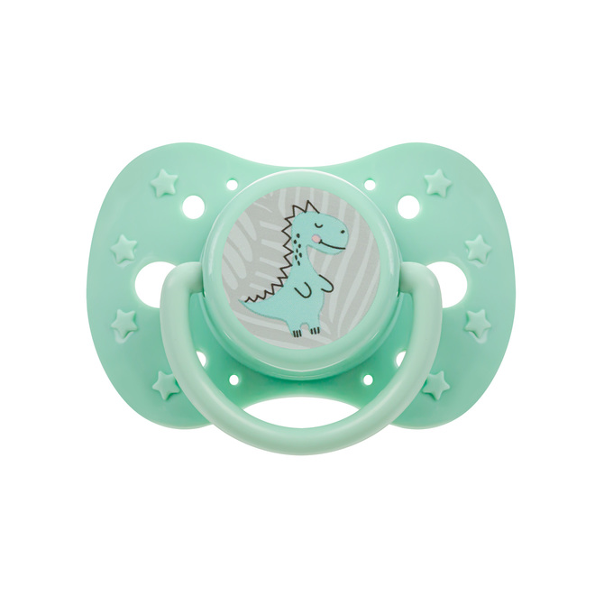 Soother pacifier made of the highest quality, odorless and tasteless silicone. Equipped with a symmetrical elastic band. Ensures free breathing and swallowing of saliva. The pacifier vents well thanks to special ventilation holes on the disc.