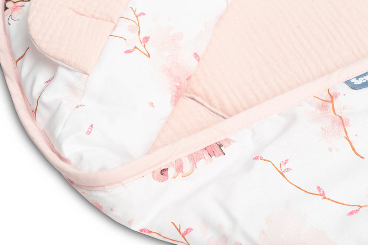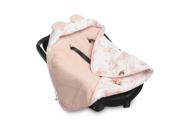 The swaddle was created with the youngest children in mind. It is comfortable and very practical when traveling. It is an alternative to warm children’s clothing. Thanks to the holes for the 3-point belts, it is very functional – you do not have to unfasten the belts to discover the child in the carrier. The swaddle has an adjustable hood. It is made of 100% muslin and cotton.