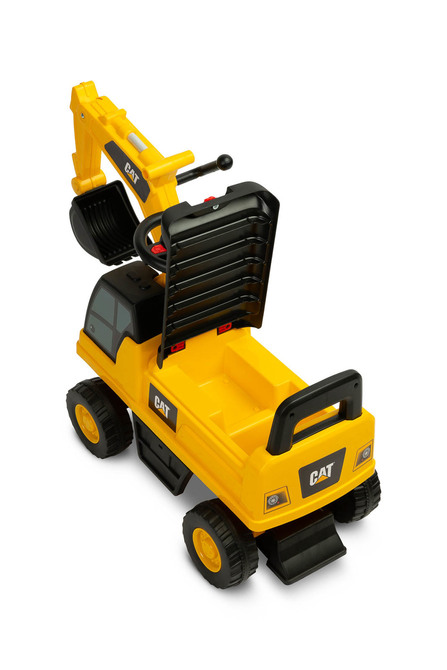 The Toyz excavator ride-on is made under the CAT license. A steering wheel with a horn, a movable excavator bucket and original colors are the things that will make the ride-on truck fall in love with all fans of heavy machinery. The vehicle is made of high-quality plastic. Under the seat there is a lockable compartment for toys. The ride-on has protection against tipping forwards and backwards.